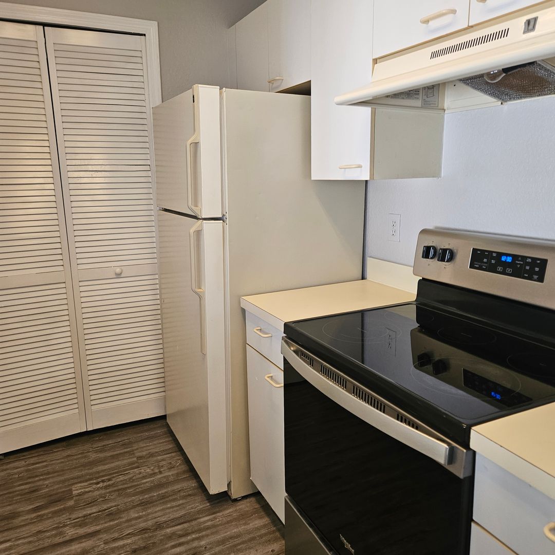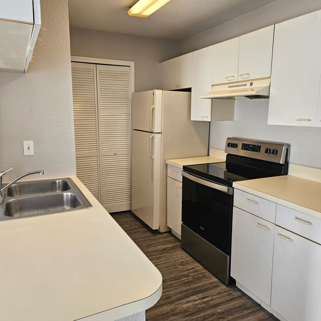 Ground Floor condo, cozy, all appliances included. Flooring is laminate wood throughout. Close to UCF and N Alafaya Trail. Community has fitness center and pool. Great location for all major roadways and shopping and restaurants. Fresh paint, new blinds and cleaned professionally. Pest control included.